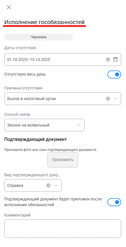 подать заявление на отсутствие в связи с исполнением гособязанностей.