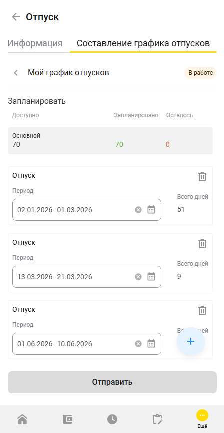 возможность подать заявление на перенос запланированного по графику отпуска.