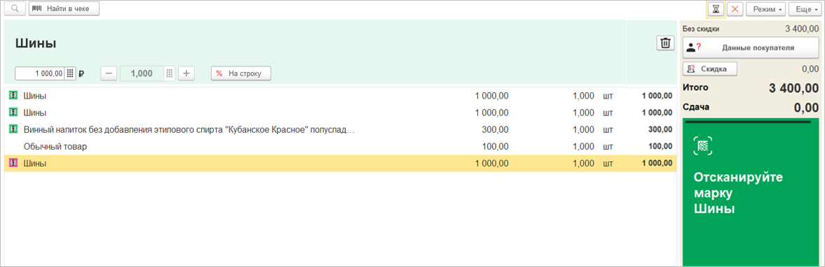 Добавлена возможность сохранения марок товара в отложенном чеке. При возобновлении чека будет выполнено автоматическое восстановление сессии проверки кодов маркировки на ККТ. Фокус устанавливается на строку, требующую внимания.