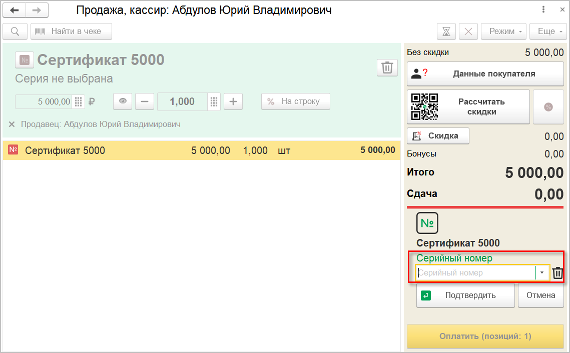 Для заполнения дополнительной информации, например номера серии или суммы сертификата, автоматически активируется необходимое поле для ввода.