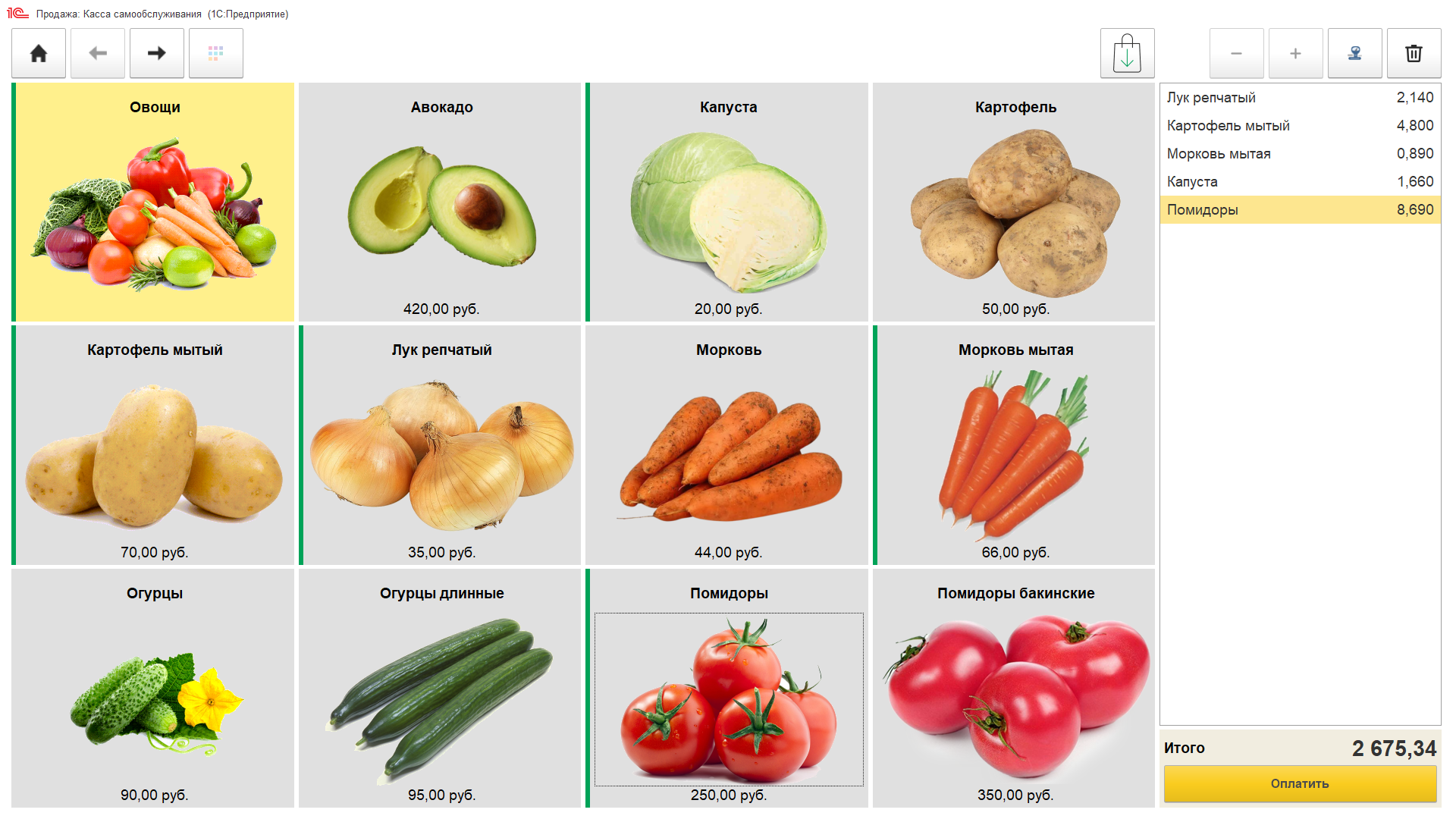 Улучшен режим работы "Касса самообслуживания". Покупатель может самостоятельно сформировать чек, сканируя штрихкоды товаров и товарных марок. Программа подскажет какие именно работы "Касса самообслуживания" товары в корзине покупателя подлежат маркировке. Весовой товар, можно добавить в чек, взвесив его на подключенных электронных весах и выбрав товар в плиточном меню.
