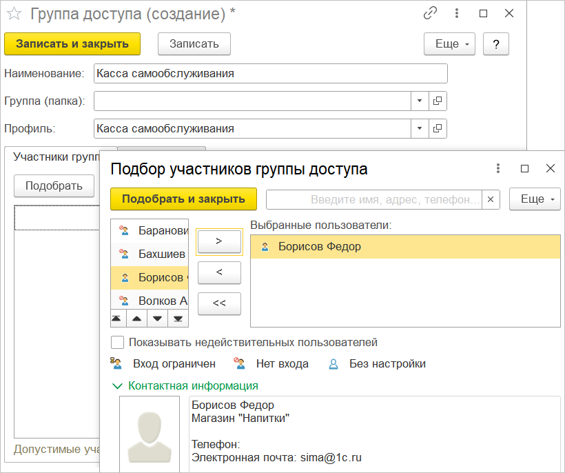 Добавляется новая группа доступа по кнопке «+ Группа доступа», здесь же сразу можно подобрать участников.