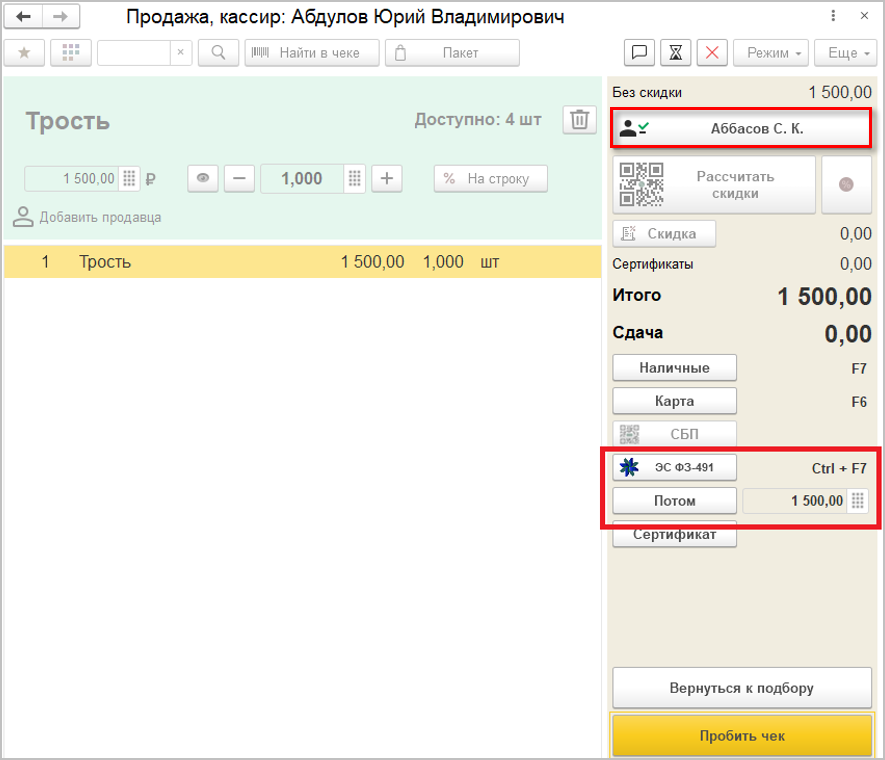 Для кассира с разрешающими правами на ручную скидку или под профилем группы доступа "Старший кассир" доступно использование ручных скидок и наценок.