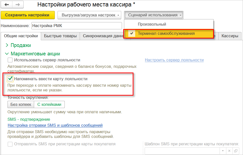 Если учет карт лояльности не ведется, то при загрузке настроек из XML игнорируется сохраненное ранее значение параметра "Напоминать ввести карту лояльности".