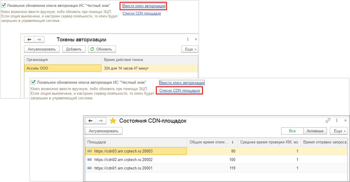В раздел "Продажи" настроек РМК добавлены ссылки для быстрого перехода к списку токенов авторизации и CDN-площадок.