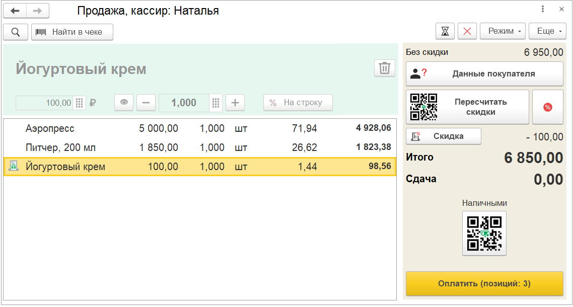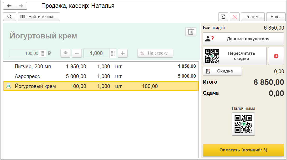 Аналогичное поведение предусмотрено для возврата товаров, продаж по заказу и при восстановлении отложенного чека.