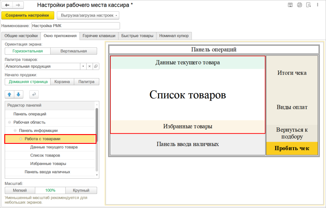 Новая возможность позволяет учесть особенности физического рабочего места кассира, специфику магазина, используемое оборудование и сделать его максимально комфортным для работы.