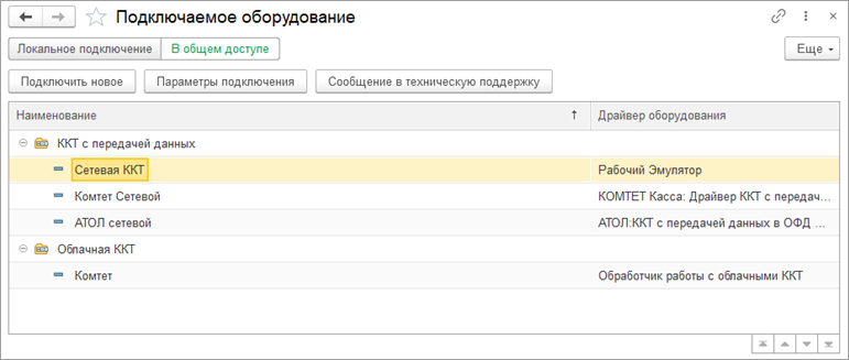 Для применения сетевой ККТ в подключаемом оборудовании необходимо создать ККТ в общем доступе, а также облачную ККТ с