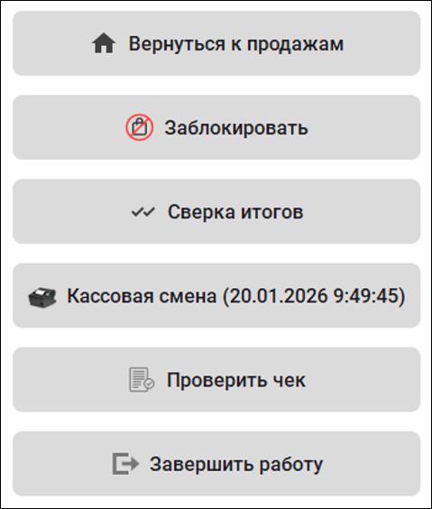 Расширили список действий при работе с КСО. Теперь сотрудник может выполнить сверку итогов на оборудовании и заблокировать терминал самообслуживания в случае непредвиденной или аварийной ситуации. Для этого в меню действий достаточно выбрать одноименную команду.