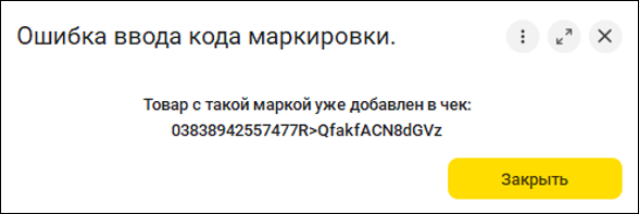 Работать с маркированными товарами становится легче. Для ввода марки товара из корзины предусмотрели специальную удобную форму, привлекающую внимание кассира к дальнейшим действиям.