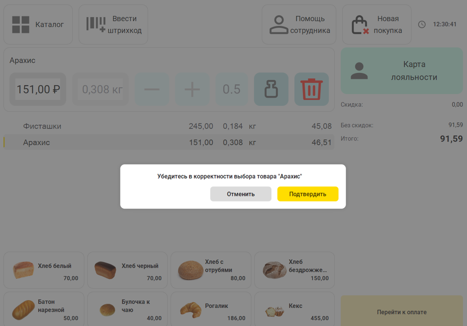 Сообщение сотруднику о необходимости проверить конкретный товар также выведено в отдельном окне.