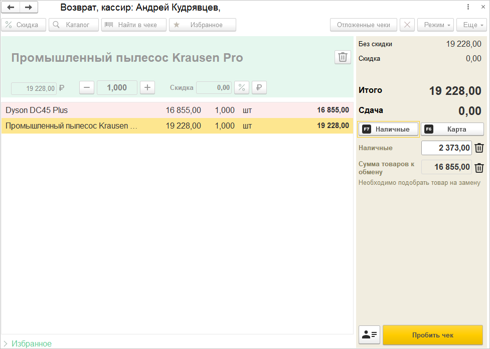 Перед ее нажатием пользователь может отредактировать товар в режиме возврата. Например, если нужно заменить только 1 единицу товара из нескольких.