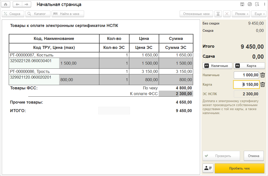 В связи с тем, что с 27.09.2021 г. вступил в силу федеральный закон от 30 декабря 2020 г. № 491-ФЗ «О приобретении отдельных видов товаров, работ, услуг с использованием электронного сертификата» в новой версии программы был поддержан учет и оплата товаров из перечня ФСС новым способом - электронными сертификатами НСПК МИР.