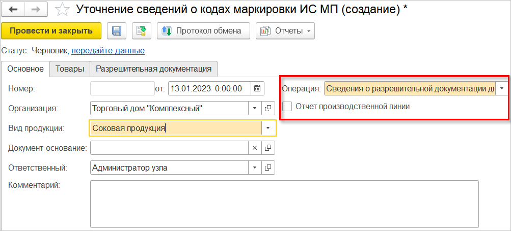 В новой версии были поддержаны требования законодательства об обязательном предоставлении сведений о разрешительной документации для кодов маркировки.
