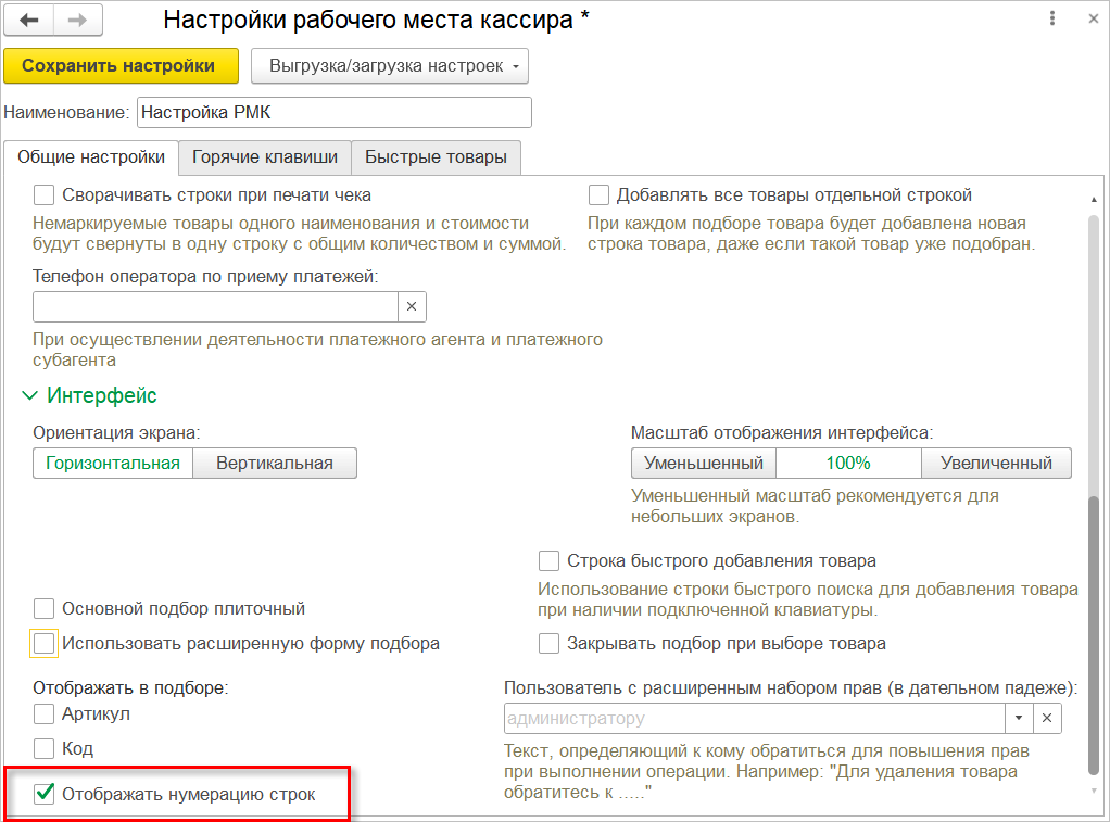 Для этого в разделе Интерфейс настроек РМК нужно включить опцию Отображать нумерацию строк.