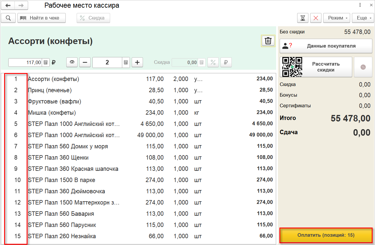 При этом на форме РМК будут отображаться номера строк, что позволит кассиру помимо визуального контроля быстрее ориентироваться в табличной части с товарами, например, когда используется дисплей покупателя и покупатель просит что-то исправить в корзине.