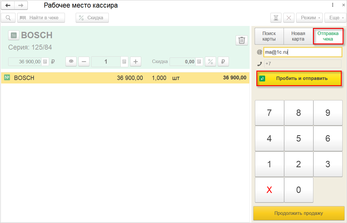 Кнопка Отправить чек, используемая при отправке электронного чека, теперь выглядит аналогично другим кнопкам и называется Пробить и отправить.