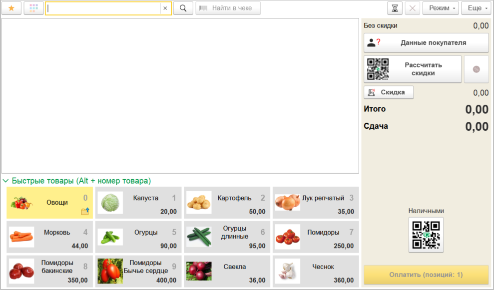 "Корзина" - новый режим запуска начала продажи, в котором продажа начинается из корзины товаров РМК. При этом сразу будут доступны "быстрые" товары.
