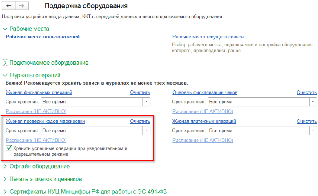 включенном режиме «Хранить успешные операции при уведомительном и