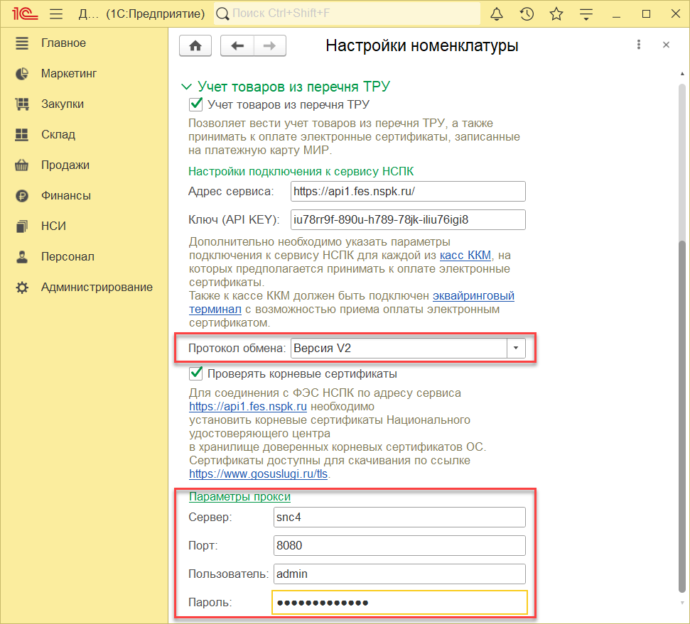 В настройках подключения к системе оплаты сертификатами НСПК появилась также возможность настройки прокси-сервера.