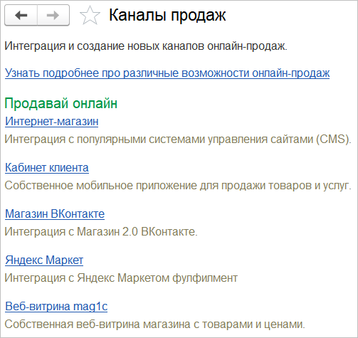 Появилась возможность публикации товарного каталога на "Яндекс.Маркете". Пользователь может настроить выгрузку товаров и обновление цен. Прием оплаты, сборку, упаковку и доставку товаров берет на себя сервис "Яндекс.Маркет".