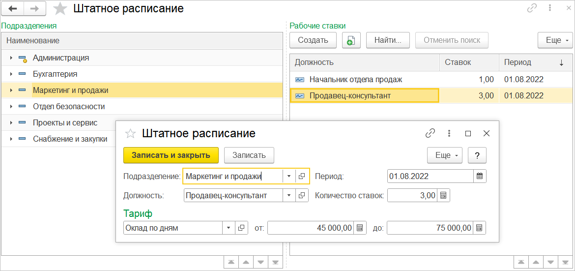 Помимо ведения графиков работы сотрудников появилась возможность ведения кадрового учета: штатное расписание, прием на работу, кадровые перемещения и совместительство, увольнение сотрудника. Это позволяет рассчитывать и формировать ведомости на выплату регулярной заработной платы, учитывать премии, удержания, вычеты и отражать их в расчетных листках сотрудников.
