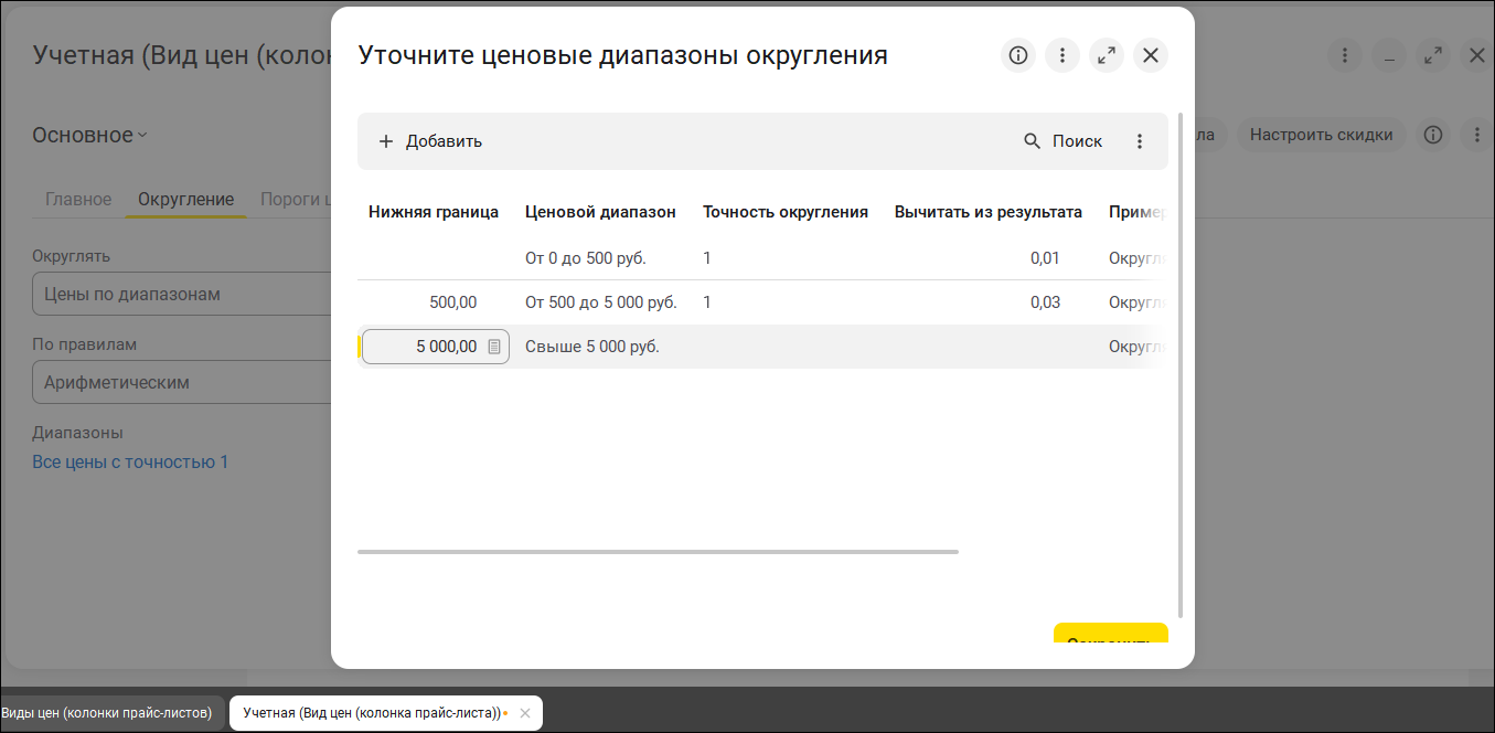 Психологическое округление можно настроить и по ценовым диапазонам.