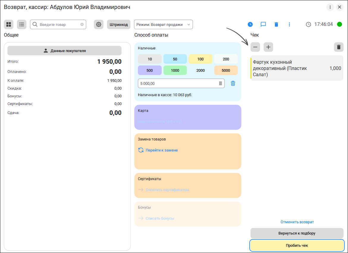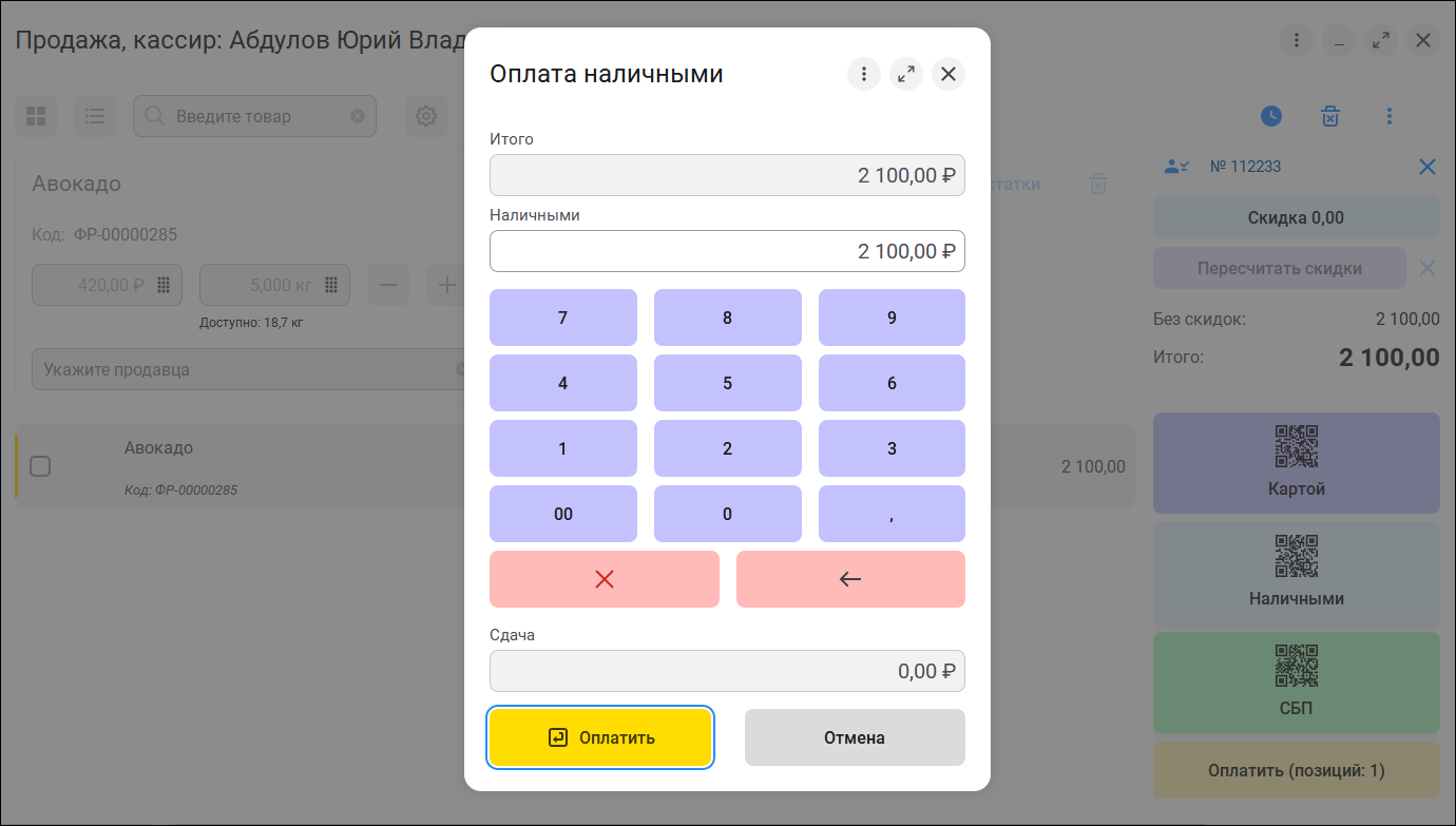 Новый понятный дизайн и цветовые акценты на главных клавишах калькулятора помогают кассирам быстрее оформлять продажи.