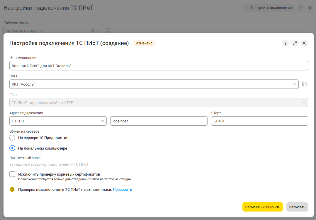 Сделали карточки оборудования более наглядными: теперь статус «Подключено» сразу виден по зеленому цвету. Это помогает быстро оценить готовность техники к работе. Дополнительно вы можете гибко управлять параметрами работы, включая или отключая опции сверки с ОФД и использования без физического подключения — это повышает контроль над процессами и адаптирует систему под ваши задачи.