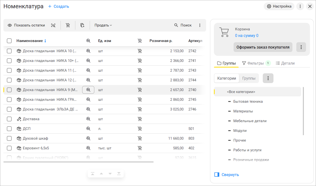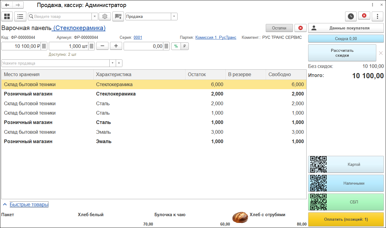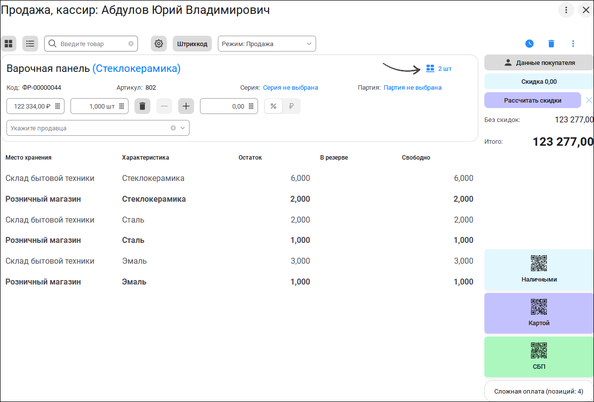 Добавили возможность многострочного выделения позиций корзины. Таким образом, если в настройках РМК разрешен выбор продавца, склада или ячейки, то при оформлении продажи можно задать единое значение параметра для нескольких строк, которые отметим "галочками". В плиточном режиме данная опция отключается автоматически.