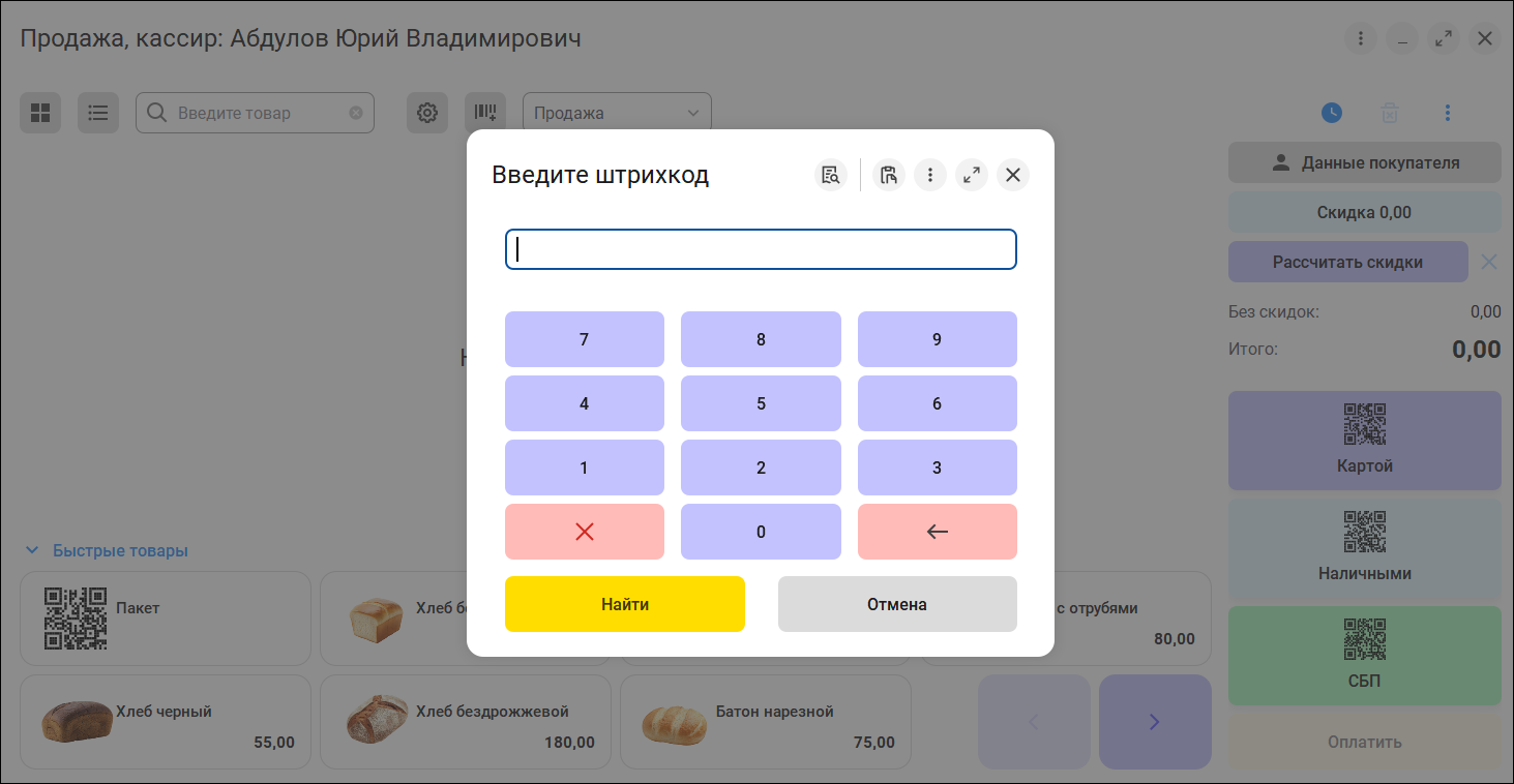 Команда ввода штрихкода "вручную" теперь дублируется в главной панели, при нажатии откроется обновленный калькулятор.