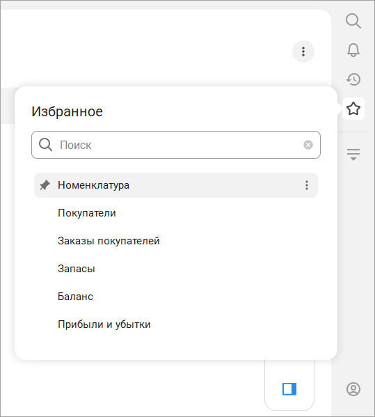 Часто используемые команды меню можно добавить в "Избранное" – напротив них появится желтая звездочка. Теперь к ним можно быстро переходить из правой панели.