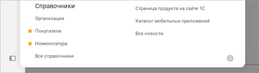 При наведении курсора открывается второй уровень с набором действий. С их помощью можно перейти к различным журналам и справочникам, документам, рабочим местам и отчетам.