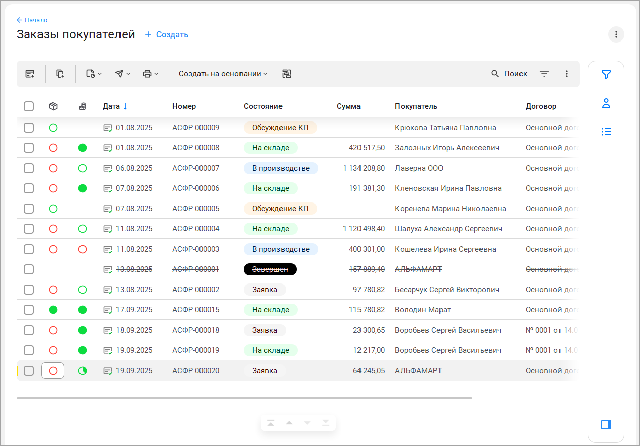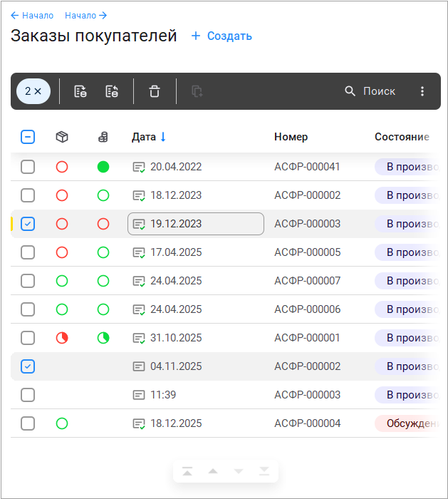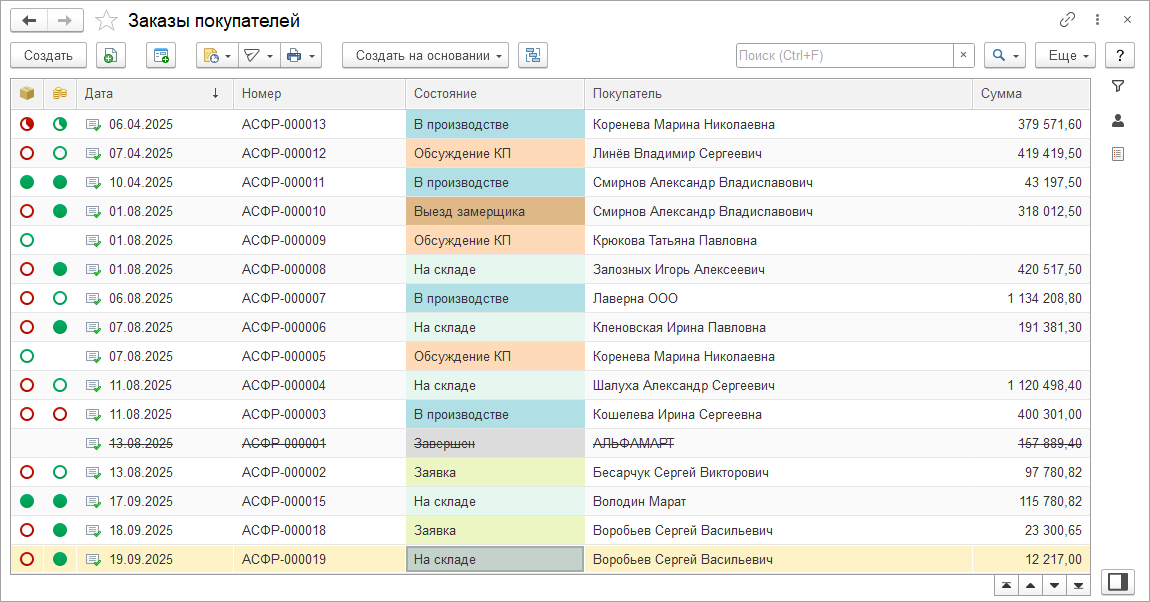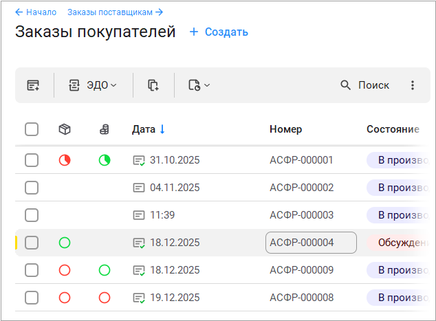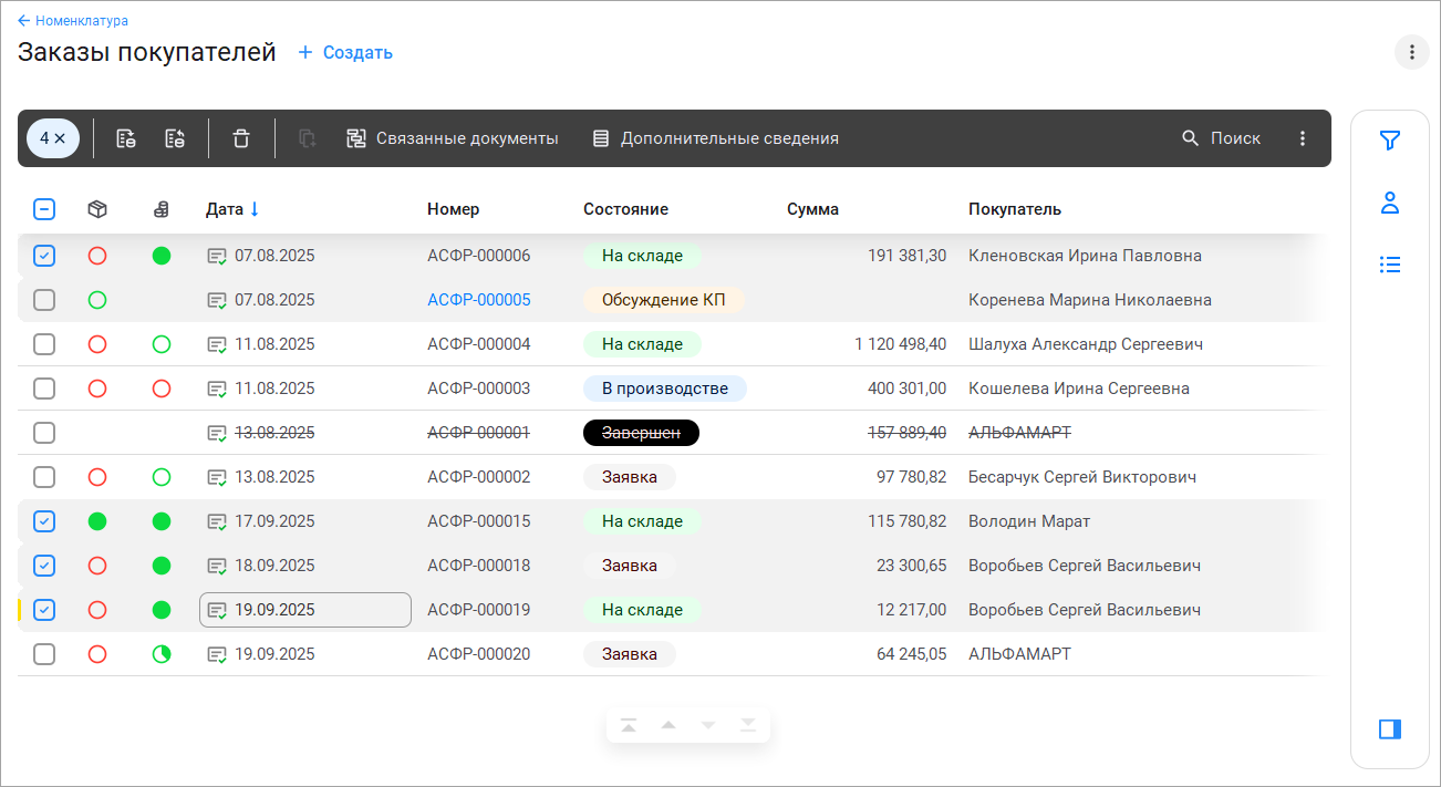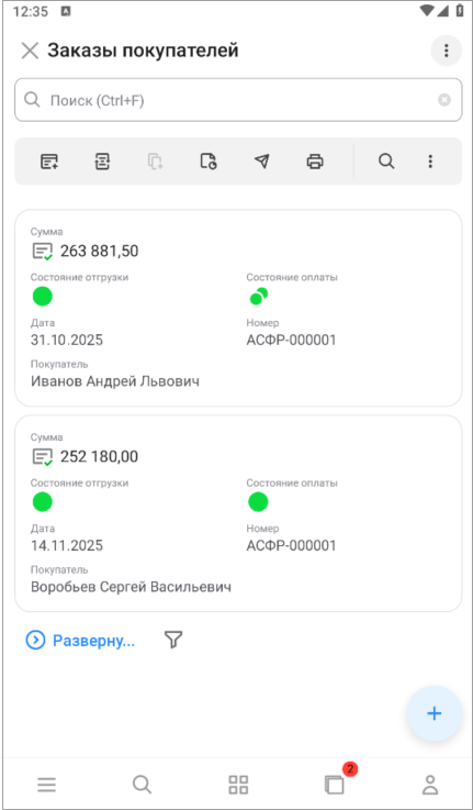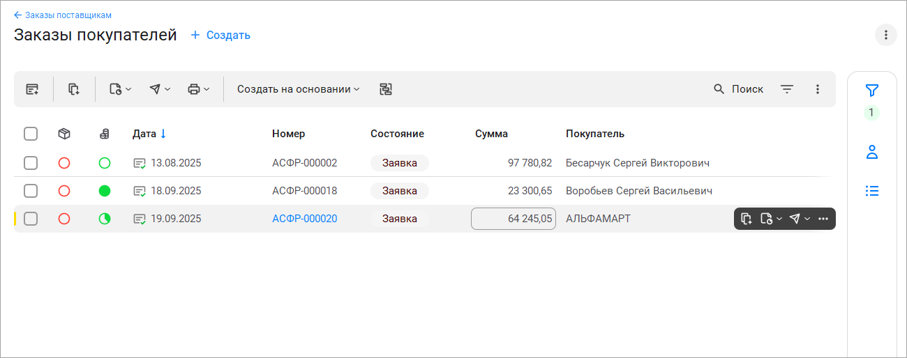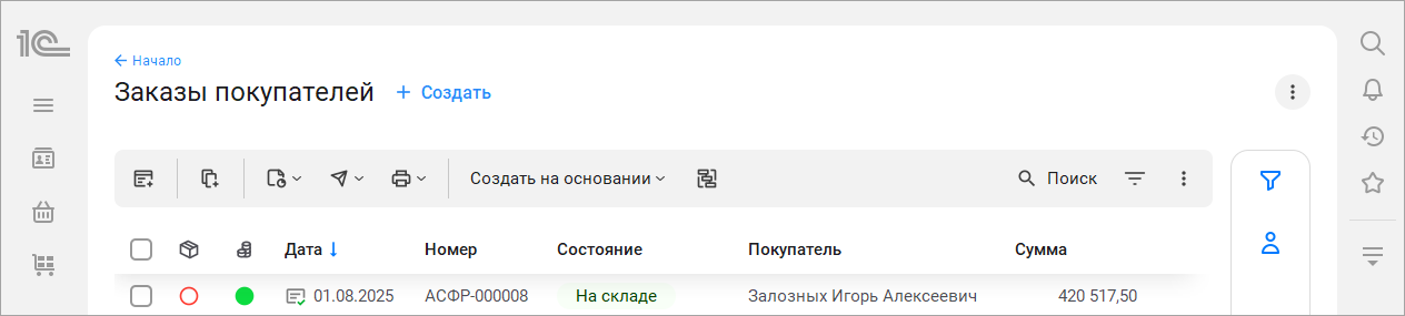 Рассмотрим изменения на примере списка документов "Заказы покупателей".