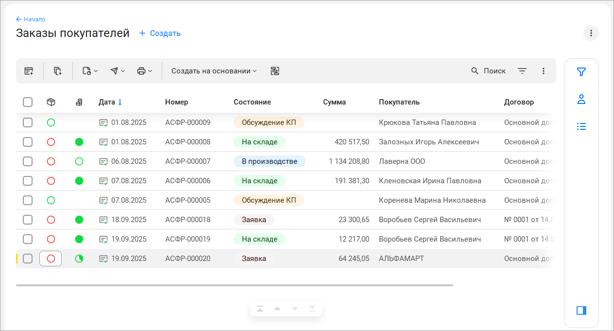 Одинаковые состояния документов выделяются бейджем одного цвета. Теперь намного проще взглядом найти документы по состоянию без использования фильтров.