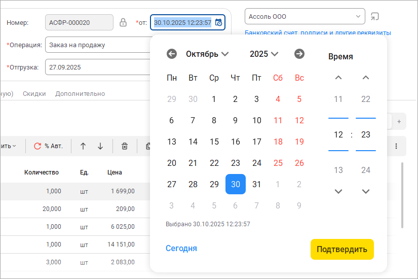 Добавили новые возможности для указания даты и времени в документах. Теперь время можно не только ввести с клавиатуры, но и выбрать в специальном окне.