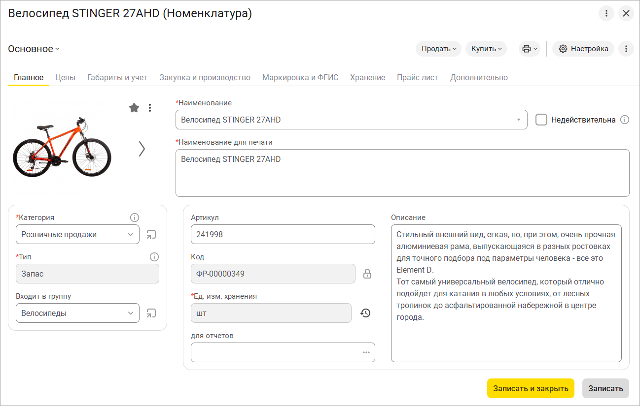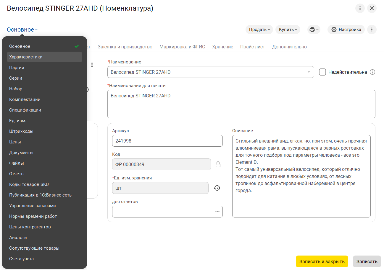 Стало удобнее идентифицировать виды продукции, подлежащие маркировке. Теперь просто выбираем общий вид в карточке номенклатуры или категории номенклатуры и, при необходимости, указываем особенность учета в другой ГОСИС: ЕГАИС, Сатурн, Меркурий и пр.