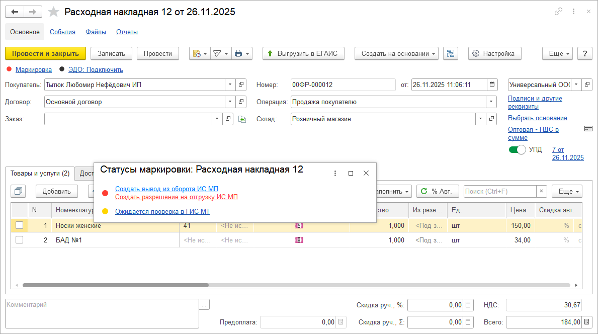 При продаже через 1С:РМК поддержали работу с несколькими комитентами. Автоматизировали настройку учета НДС комитента.