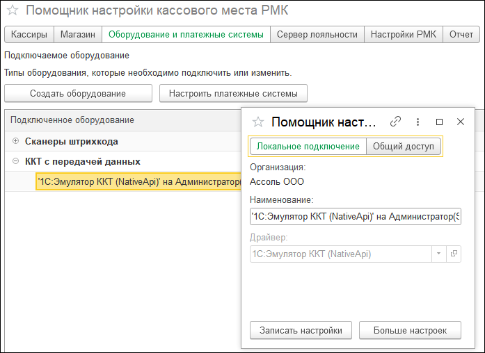 Для добавления оборудования просто выберите его типы и укажите основные настройки. Ранее количество выбранного оборудования влияло на количество страниц настройки, теперь все настройки собраны в единой форме. Все типы оборудования кроме фискального регистратора и эквайрингового терминала имеют одинаковые параметры создания. Количество создаваемого оборудования не ограничено.