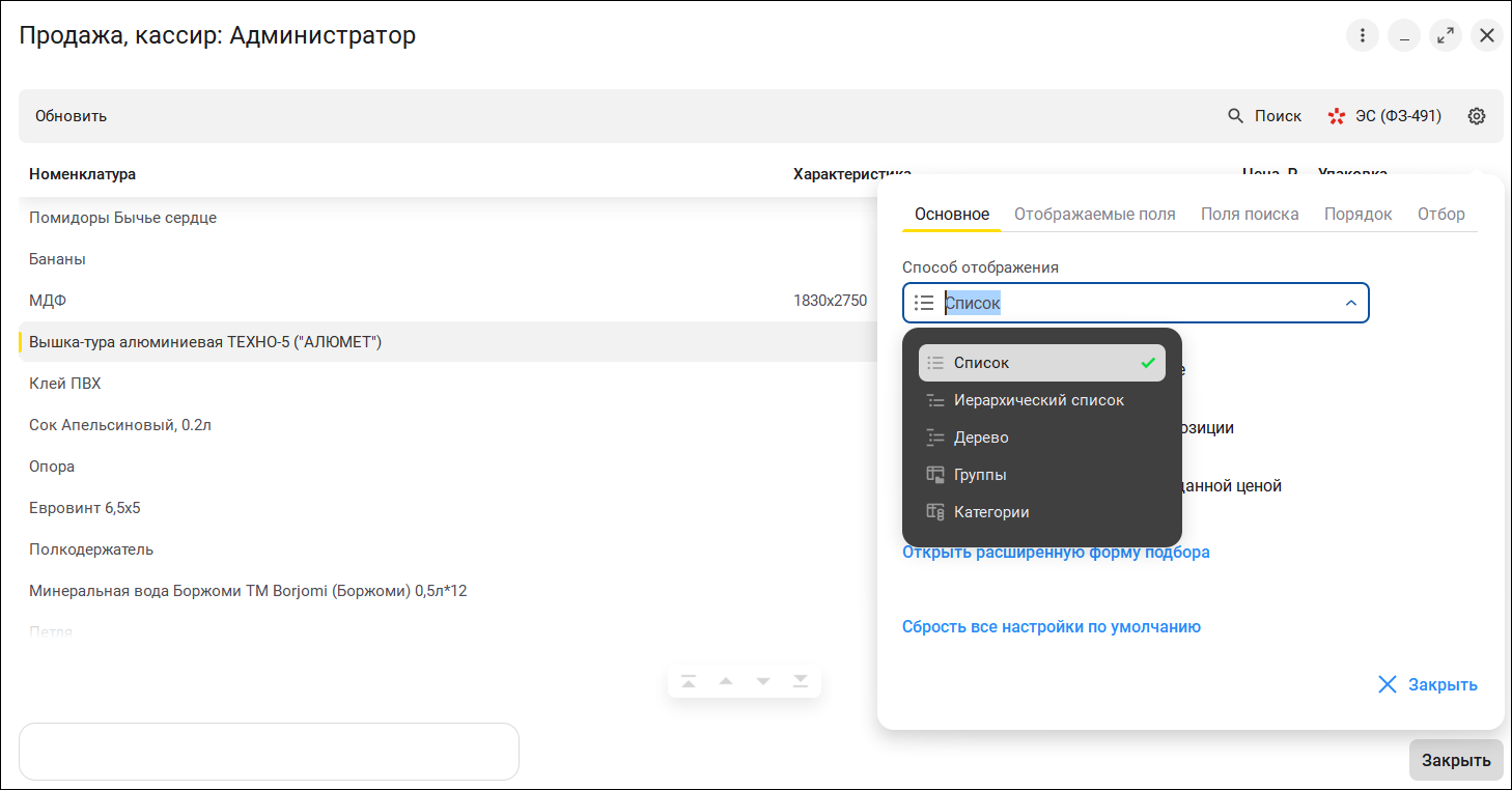 При оформлении продажи старший кассир РМК теперь может использовать сразу несколько видов цен, а также выбирать нужный вид в любое удобное время. Команда "Сменить вид цены" расположена в меню "Еще". При смене вида цены будут пересчитаны данные в корзине, в том числе с учетом МРЦ и ЕМРЦ.