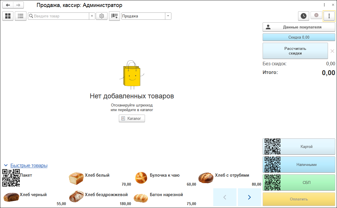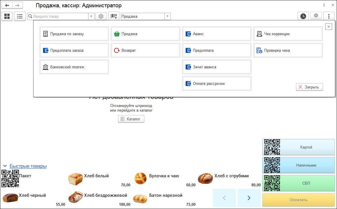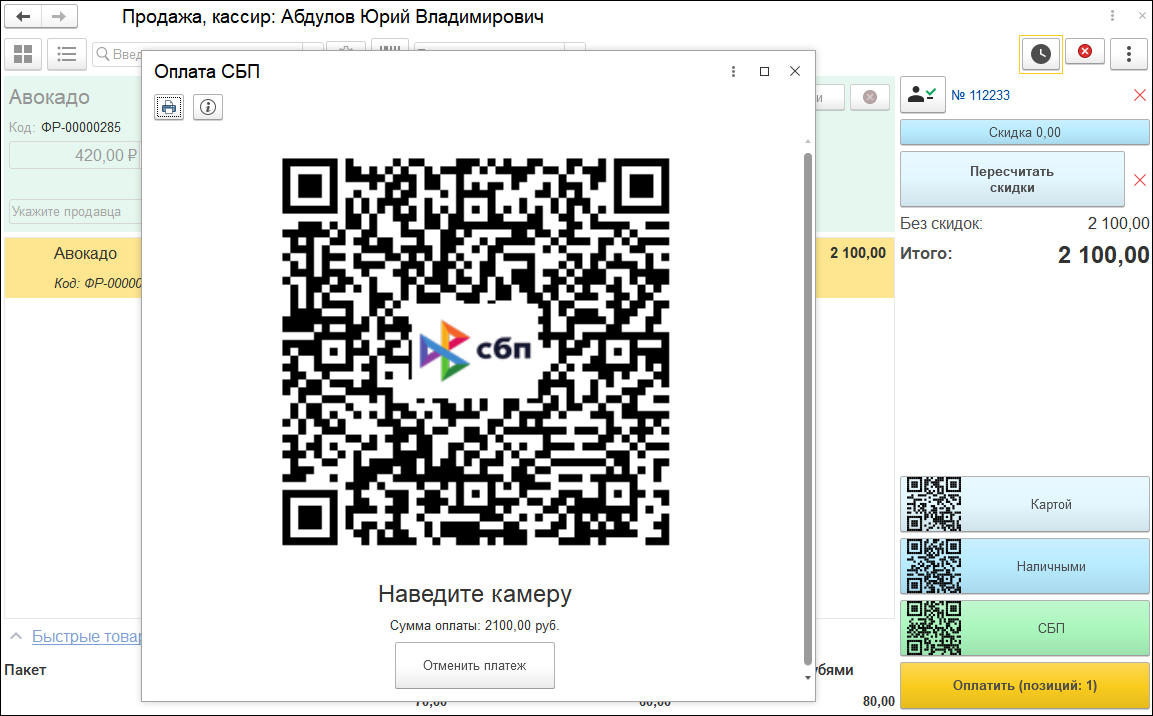 Дополнительно на каждой кнопке расположен QR-код для считывания, с том числе для СБП. Удобно, если кассир в основном пользуется сканером.