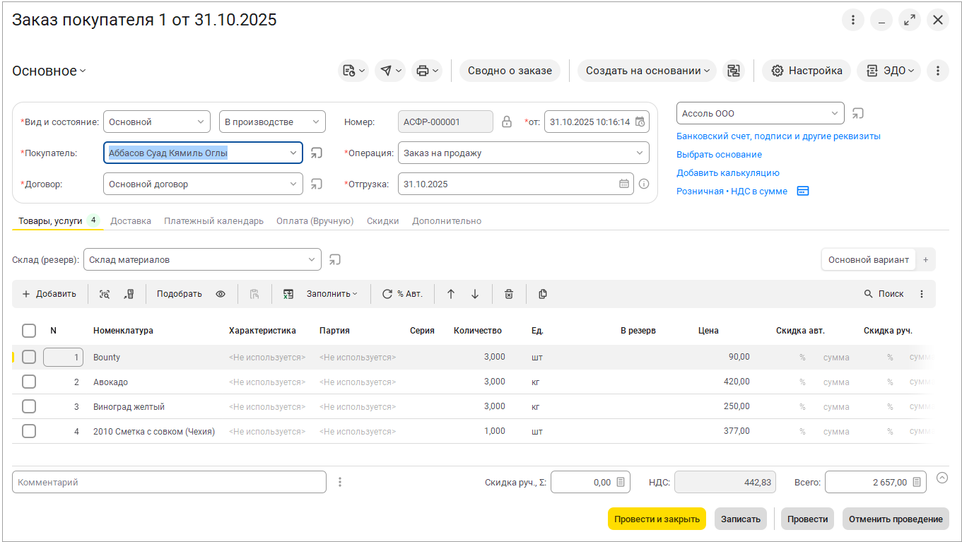 Изменения в интерфейсе произошли и в формах документов. Рассмотрим на примере заказа покупателя.