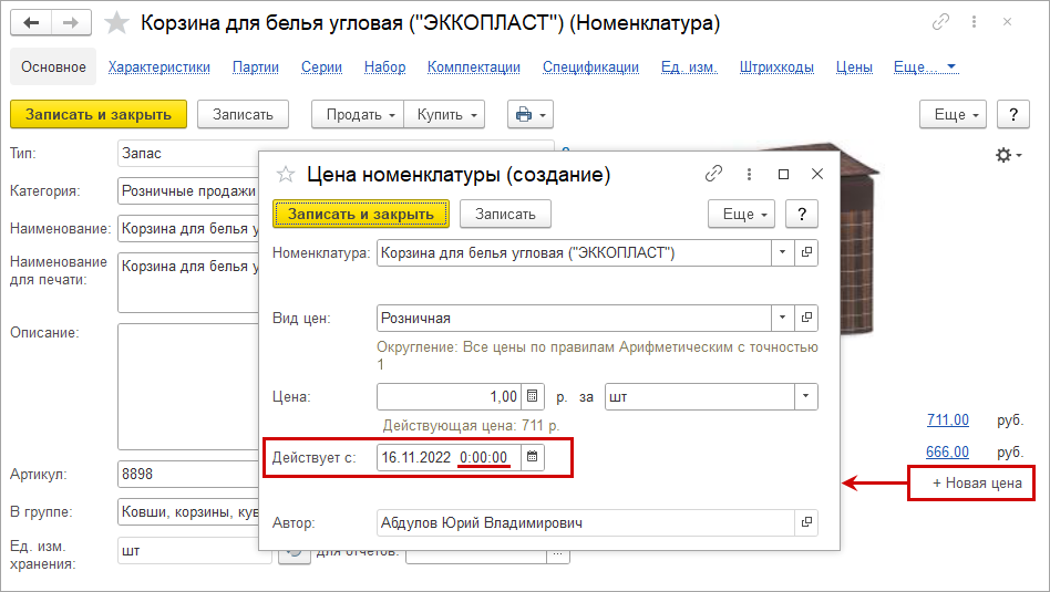Появилась возможность записывать изменение цен в течении дня. Записи в регистре "Цены номенклатуры" теперь детализируется до секунды.