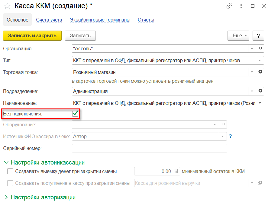 Теперь работать в РМК можно с кассой без подключения оборудования. При этом остается доступным режим работы с несколькими кассами: подключаемыми и без подключения оборудования.