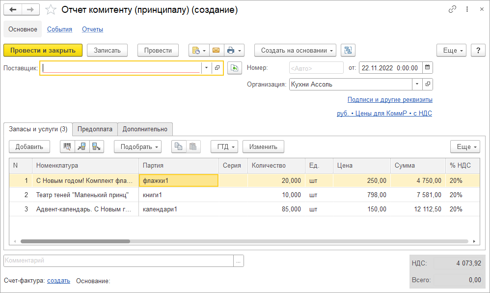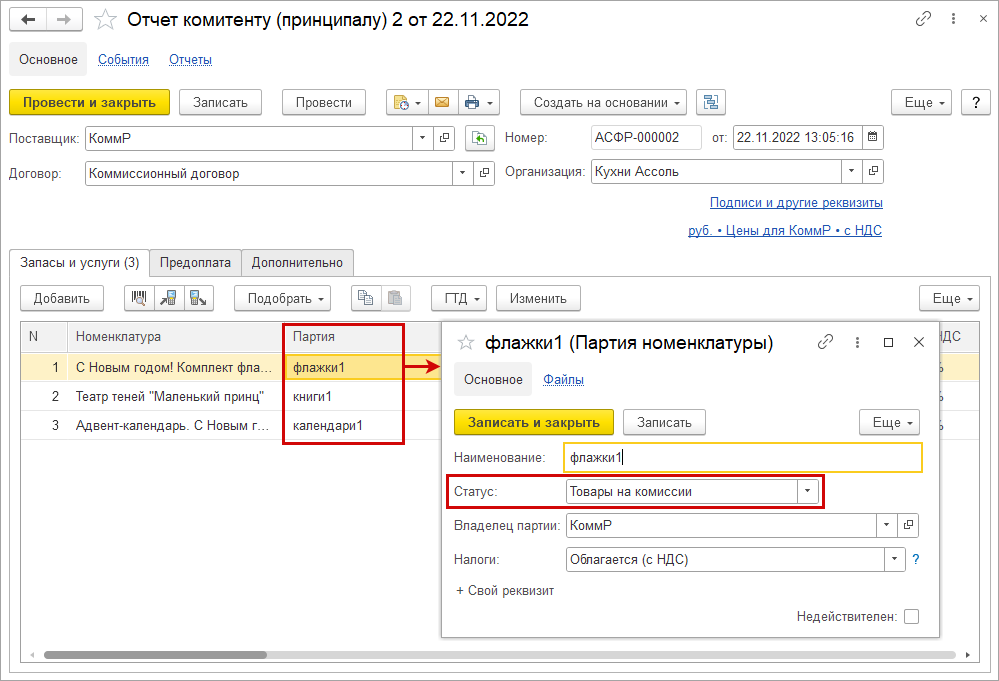 По завершению работы с формой номенклатура автоматически заполнится согласно заданным соответствиям.