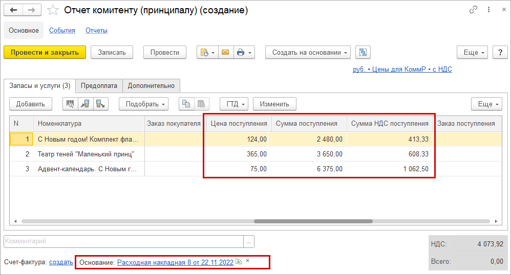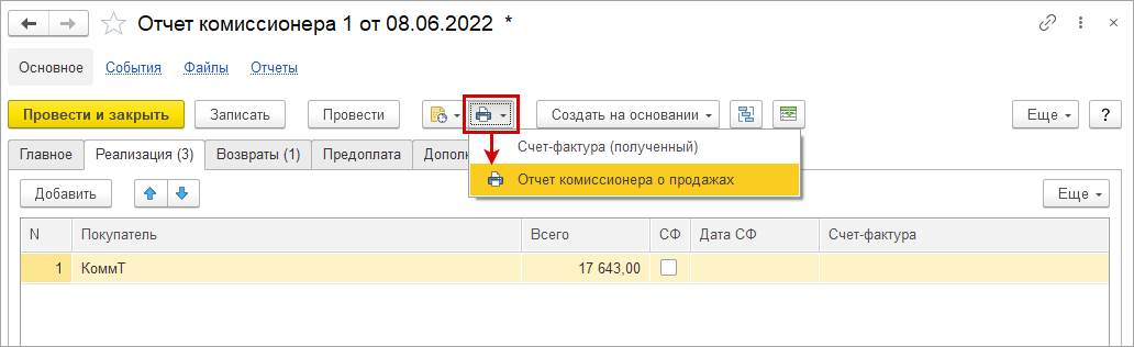 Аналогичный механизм работает для печатной формы УПД документа "Расходная накладная".