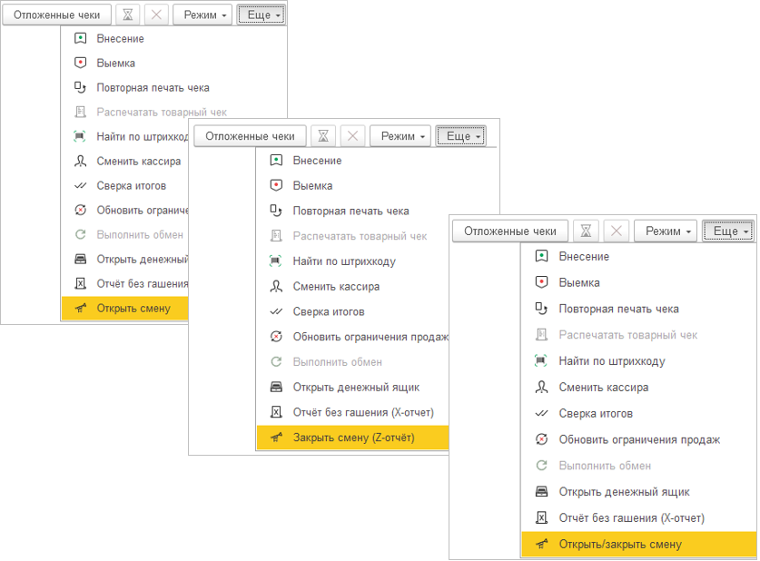 Ранее при закрытии кассовой смены необходимо было решить, что делать с отложенными чеками: пробить или удалить. Сохранить отложенный чек как черновик после закрытия смены было невозможно.