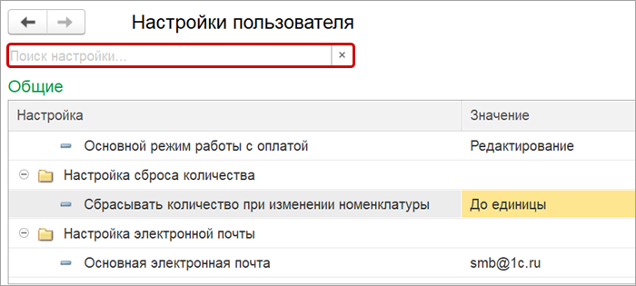 Для быстрого поиска нужной настройки в форме персональных настроек появилось окно с поиском.