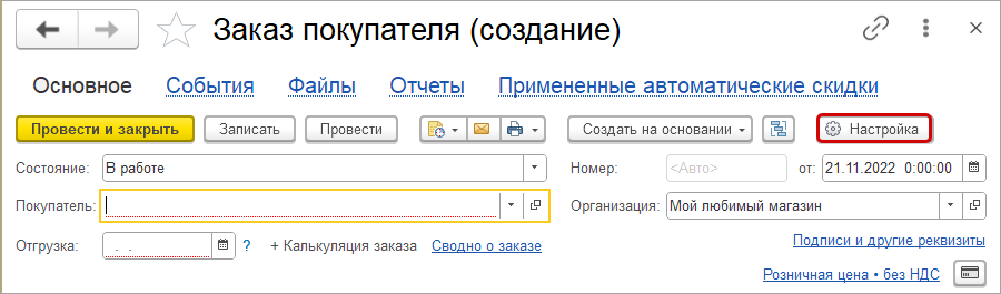 Упростили работу с состояниями заказов в документе «Заказ покупателя».