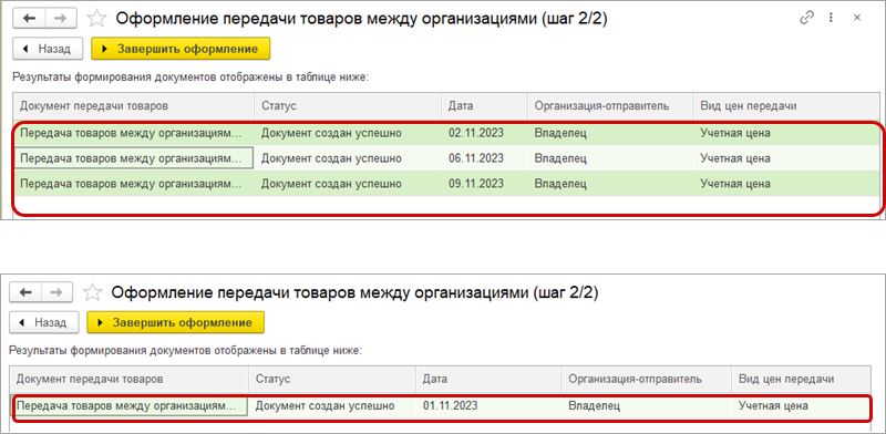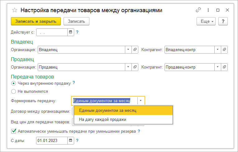 Теперь можно выбрать, формировать документы передачи на дату каждой продажи или один документ за месяц.
